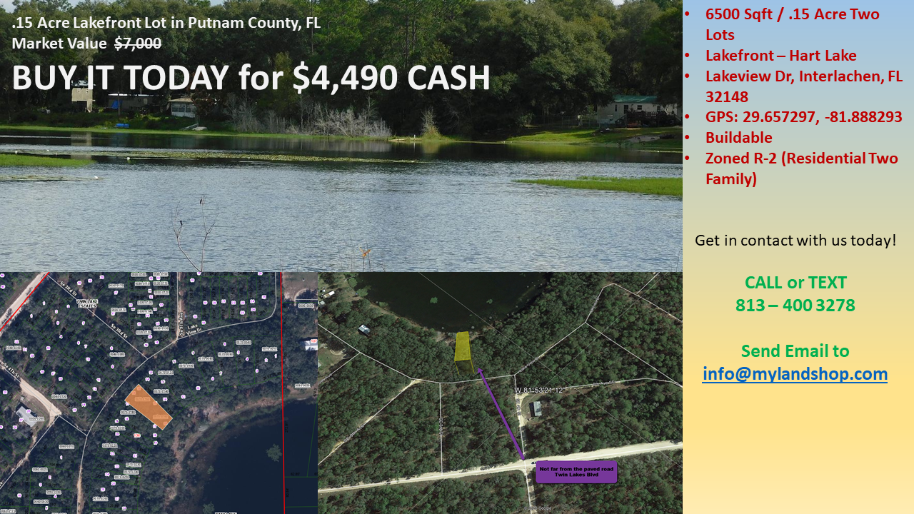 Own this gorgeous lot we have for sale in Putnam County, Florida. This property is perfect for those who are looking to escape the populated city to settle in a piece of land where there is peace and tranquility. With its lake frontage, it offers scenic views of the Hart lake and a lot more! A lot of jobs will be created in Hawthorne Industrial Park which is only 20 mins drive from the property.